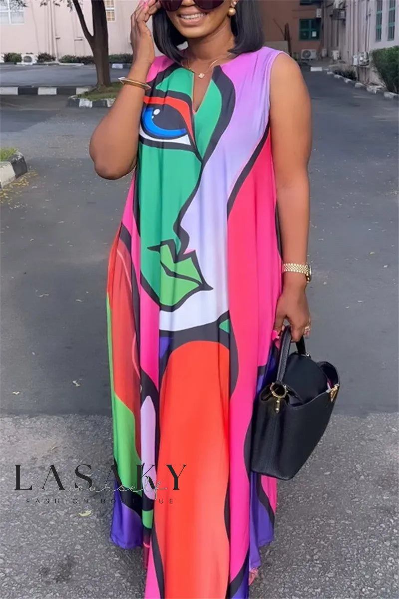 LM | Dress with red neckline print